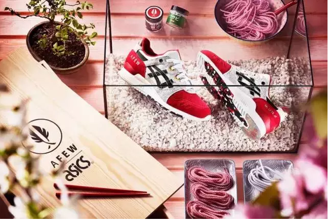 內(nèi)置的白色防塵袋除了聯(lián)名鞋款外,還裝有一雙紅色竹筷及印有設(shè)計靈感的小冊子,額外附贈的兩條鞋帶分別裝在芥末瓶與醬油瓶中,拿起筷子可以開吃了。