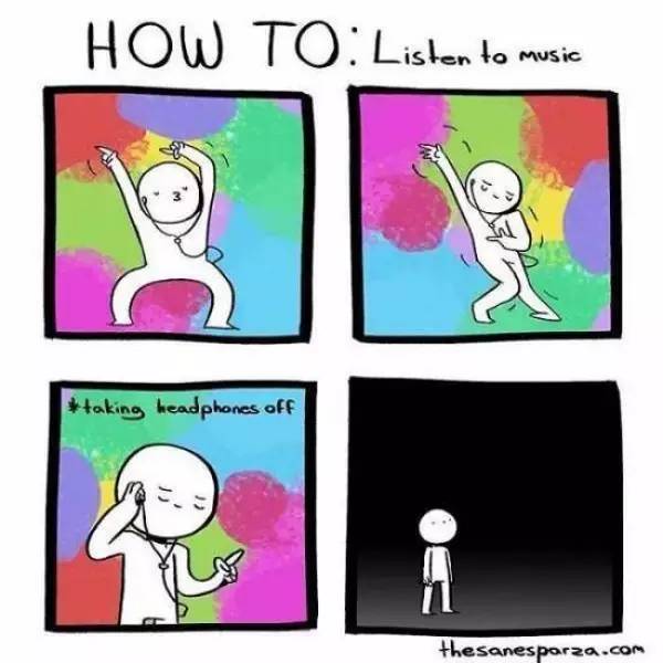 可是拿下耳機(jī),現(xiàn)實(shí)又回來了,從虛幻的世界再次回到現(xiàn)實(shí)的落寞你是否接受得了?是不是有了永遠(yuǎn)都不想把耳機(jī)摘下來的沖動(dòng)?但這又不太現(xiàn)實(shí),果然,逃避并不是一個(gè)好辦法,那就面對(duì)吧!