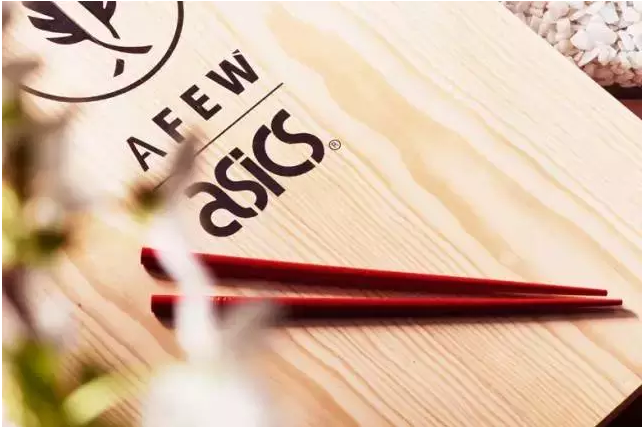 內(nèi)置的白色防塵袋除了聯(lián)名鞋款外,還裝有一雙紅色竹筷及印有設(shè)計靈感的小冊子,額外附贈的兩條鞋帶分別裝在芥末瓶與醬油瓶中,拿起筷子可以開吃了。