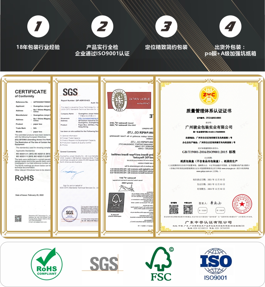 駿業(yè)包裝將繼續(xù)發(fā)展全球貿(mào)易,關(guān)注客戶體驗,為客戶提供高質(zhì)量和最新的包裝,并幫助客戶的產(chǎn)品銷售得更好。歡迎聯(lián)系我們。