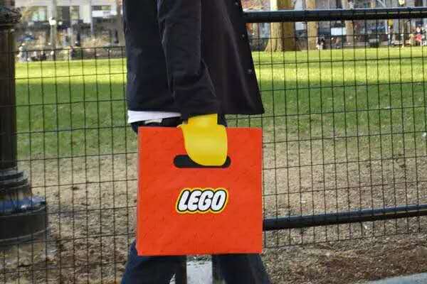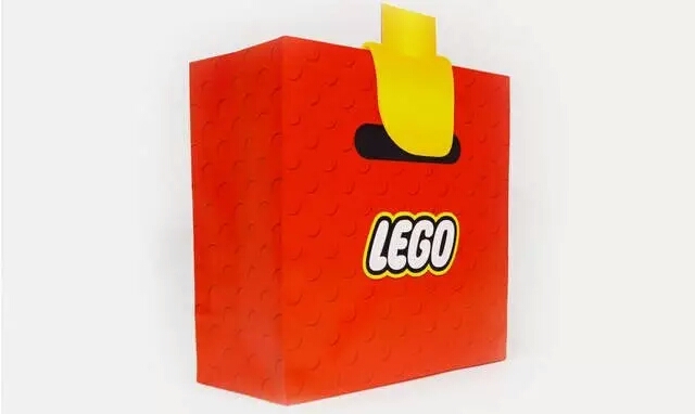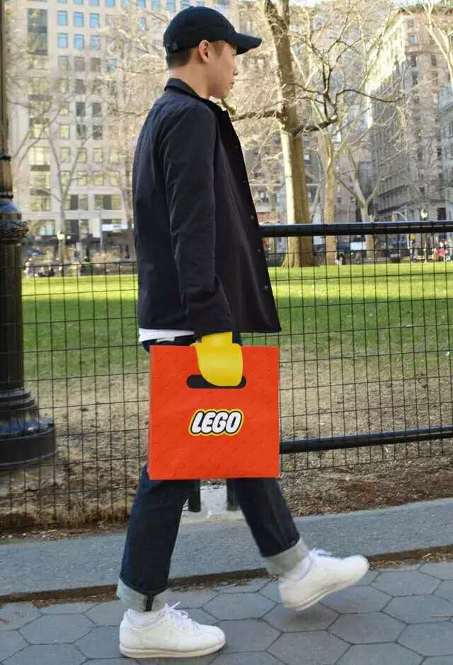 樂(lè)高積玩具是一種塑膠積木,風(fēng)靡全球。有天,紐約視覺(jué)藝術(shù)學(xué)院的兩位學(xué)生Junho Lee和Hyun Chul Choi的就把樂(lè)高積木元素放到到手提的購(gòu)物袋上,創(chuàng)作出只要提起紙袋手就變成跟樂(lè)高人偶一樣的形狀,這樣充滿玩心的設(shè)計(jì)一出當(dāng)然又被一片「想買(mǎi)」的聲音給淹了。